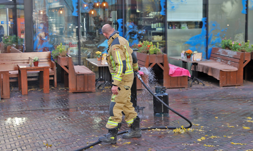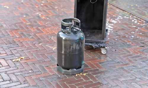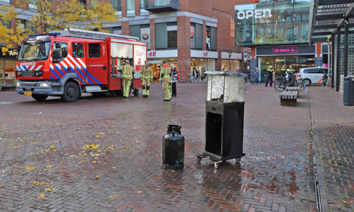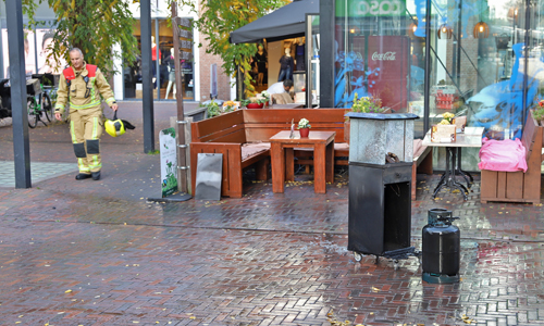 Delft – Woensdagochtend 14 november is de brandweer van Delft met spoed gealarmeerd voor een brand op het Vesteplein in Delft. Ter plaatse bleek er een gasfles van een terraswarmer in brand te staan. De brandweer is direct begonnen met het koelen van de fles, omdat de fles constant warm bleef duurde dit lange tijd. De terrasverwarmer is zwaar beschadigd, voor zover bekend zijn er geen gewonden gevallen. Het restaurant blijft open voor klanten.
