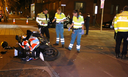 Den Haag – Woensdagavond 14 november heeft er op de Beresteinlaan in Den Haag een ongeval plaatsgevonden tussen een motoragent en een auto. De motoragent reed volgens getuigen op het fietspad toen deze werd geramd door een auto die uit een zijstraat kwam. De motoragent kwam met motor en al ten val, de motoragent raakte lichtgewond. Zowel de auto als de politiemotor zijn flink beschadigd, de politie start een onderzoek.