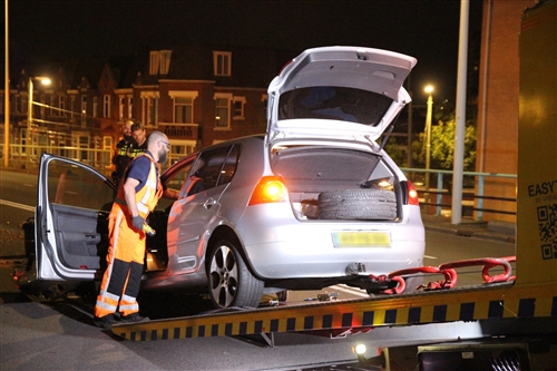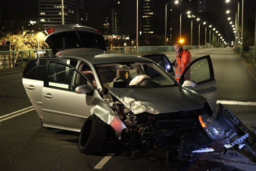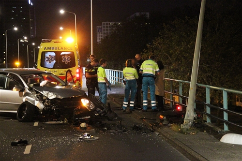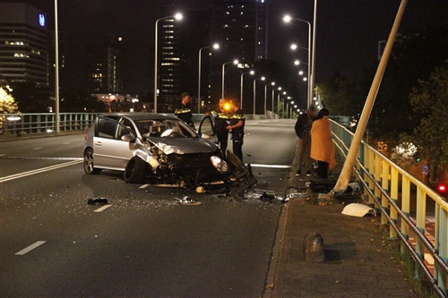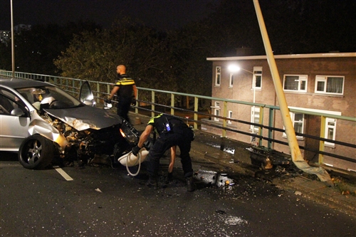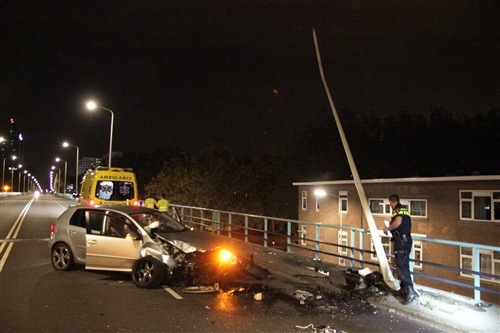 Den Haag – Een automobilist is zondagochtend rond 4:30 uur op een lantaarnpaal gebotst. Dit gebeurde op het Schenkviaduct in Den Haag. Door de klap kwam de auto omgekeerd tot stilstand. De automobilist en een bijrijder raakten gewond en moesten in de ambulance worden nagekeken. Beide slachtoffers zijn na controle in de ambulance zonder spoed naar het ziekenhuis vervoerd.
