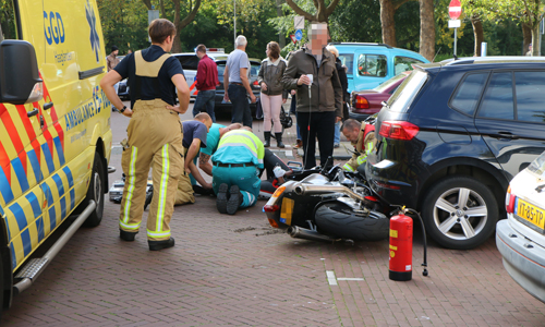 Delft – Zaterdagmiddag 14 oktober werden de ambulancedienst, de politie en de brandweer met spoed gealarmeerd voor een eenzijdig ongeval op de Kloosterkade in Delft. Aldaar was een motorrijder onderuit gegaan en tot stilstand gekomen tegen/onder een geparkeerde auto. Ambulancepersoneel is direct begonnen met het stabiliseren van het slachtoffer. Omdat de motor lekte heeft de brandweer zand neergelegd over het lekkende vloeistof. De motorrijder is door middel van een schepbrancard de ambulance in gegaan. Niet veel later is het slachtoffer met A1 (Spoed) vervoerd naar het RdGG in Delft.