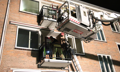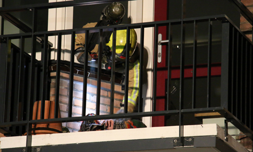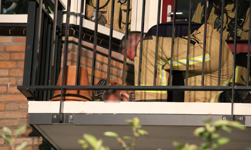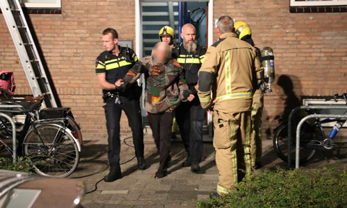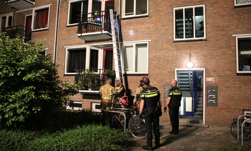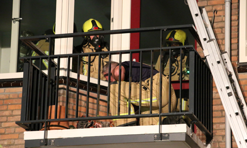 Voorburg – Vrijdagavond 14 september is de brandweer gealarmeerd voor een brand in een woning. De woning onder de woning van de meldster stond bij aankomst vol met rook, de brandweer heeft de deur moeten forceren. Op het balkon van de desbetreffende woning is toen een man aangetroffen. Brandweermannen zijn met een ladder het balkon op geklommen om de man medische hulp te verlenen. Ook kwam een ambulance met spoed ter plaatse. De politie stond ook korte tijd op het balkon omdat de man zich agressief gedroeg. De man is door de politie meegenomen naar beneden een aangehouden.