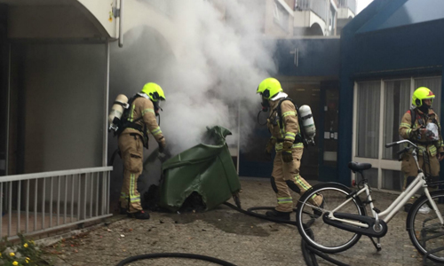 Rotterdam – Donderdagmiddag heeft er brand gewoed in een container onder woningen aan de Aar in Rotterdam. De brandweer schaalde al vrij snel op naar middelbrand. Bij de brand kwam veel rook vrij. Nadat de container onder de woningen vandaan was gehaald, kon de brandweer de container blussen. Hierna kon de ruimte geventileerd worden. Voorzover bekend vielen er geen gewonden bij de brand.