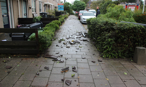 Even later was het goed raak aan de Marsmanstraat. Aldaar werd bij tientallen huizen in de wijk de dakpannen van het dak gewaaid. Ook knalde een van de dakpannen door een ruit op de eerste verdieping. De brandweer is met meerdere eenheden vanuit ‘s-Gravenzande, Naaldwijk en Den Haag ter plaatse gekomen. De hulpdiensten schaalden op naar ‘Grip 1’.