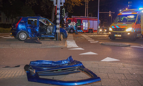 Rotterdam – Op de kruising Gerdesiaweg met het Ammanplein in Rotterdam heeft zaterdag een zware aanrijding tussen twee personenauto’s plaatsgevonden. Zowel de brandweer, politie, ambulance als een traumateam kwamen ter plaatse. Minimaal twee personen raakte bij de botsing gewond. Beide slachtoffers zijn naar het ziekenhuis gebracht. De politie is een uitgebreid sporenonderzoek gestart naar de toedracht van het ongeval. Het tramverkeer lag ten tijde van de aanrijding stil en ook voor het autoverkeer was de kruising gedeeltelijk gestremd.