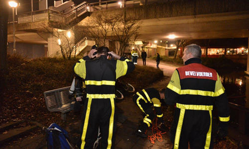 De brandweer heeft donderdagavond het water doorzocht bij de Paul Scholtenrode in Zoetermeer nadat er een fiets en kleren waren gevonden door