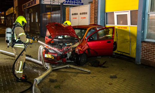 Schiedam – De brandweer werd in de nacht van vrijdag op zaterdag opgeroepen voor een autobrand aan de Kommiezenlaan in Schiedam. Ter plaatse bleek er een eenzijdige aanrijding te hebben plaatsgevonden. Een auto reed eerst een lantaarnpaal uit de grond en kwam daarna tegen een garagedeur van een bedrijfspand tot stilstand. De brandweer heeft de auto gecontroleerd op brand. Het is onbekend of er bij de aanrijding gewonden zijn gevallen, want van de betrokkenen ontbrak ieder spoor. De politie zal de aanrijding verder gaan onderzoeken.
