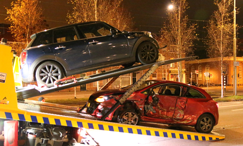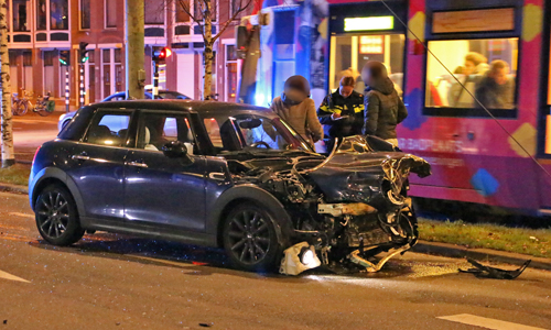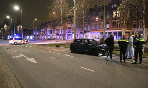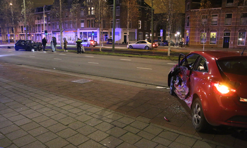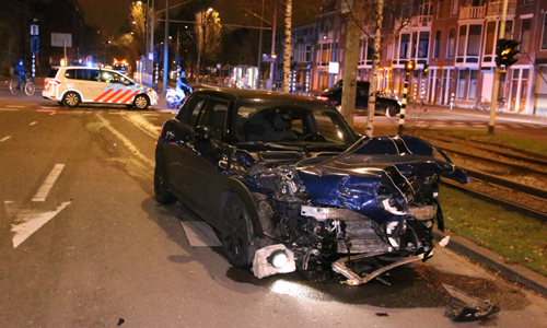 Den Haag – Op de kruising van de Waldeck Pyrmontkade met de Elandstraat in Den Haag heeft zaterdagochtend 15 december een flinke aanrijding plaatsgevonden met enorme schade als gevolg. Beide voertuigen kwamen in botsing op de kruising. Eén van de voertuigen belandde 50 meter verder met de neus omgedraaid. Beide bestuurders moesten door het ambulancepersoneel worden nagekeken maar hoefden niet mee naar het ziekenhuis. De weg is nog lang dicht geweest in verband met opruim werkzaamheden.