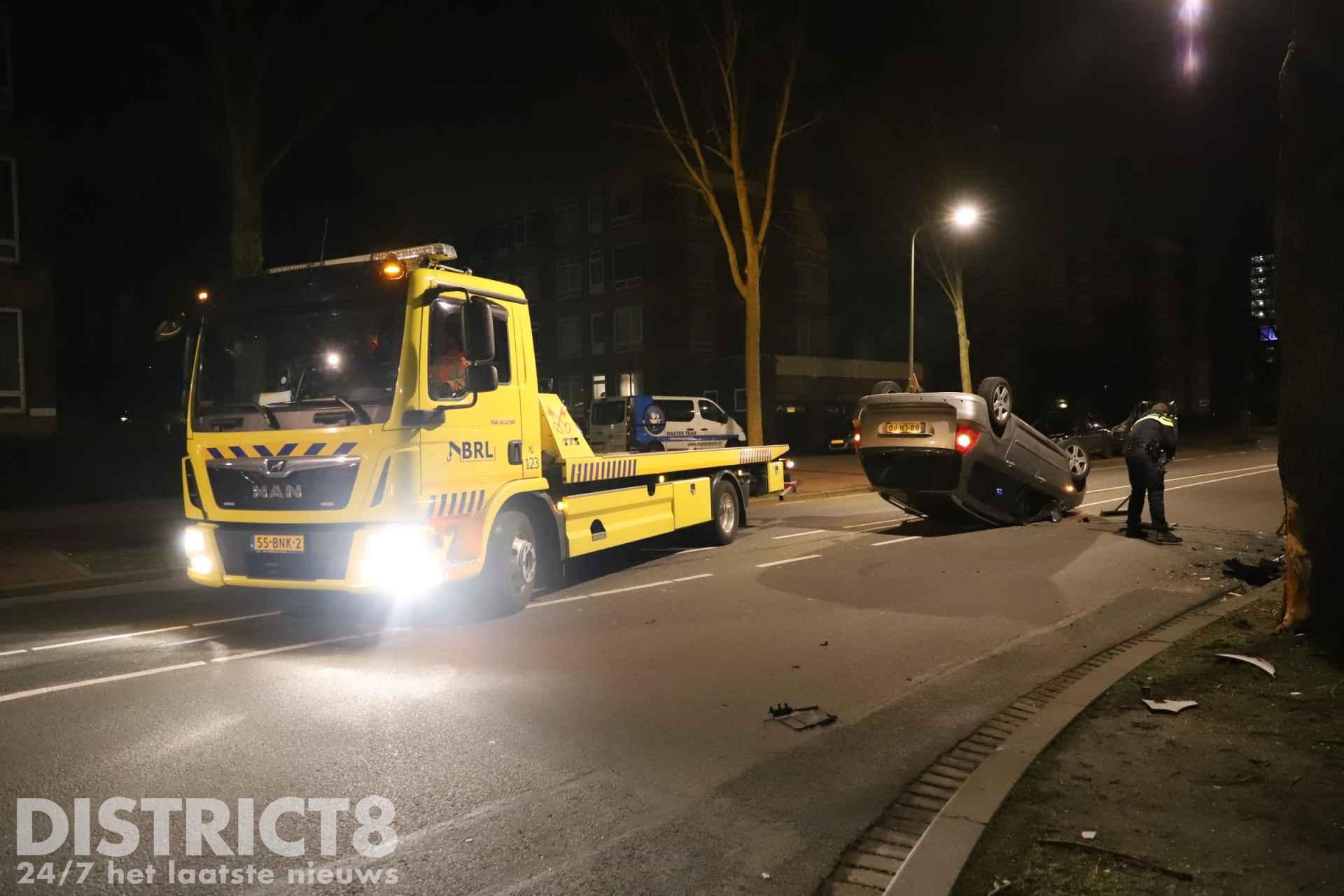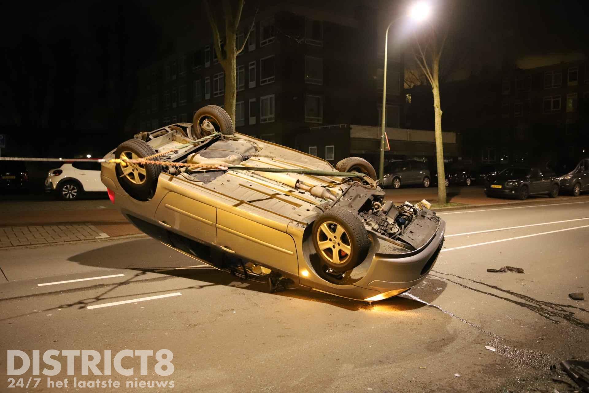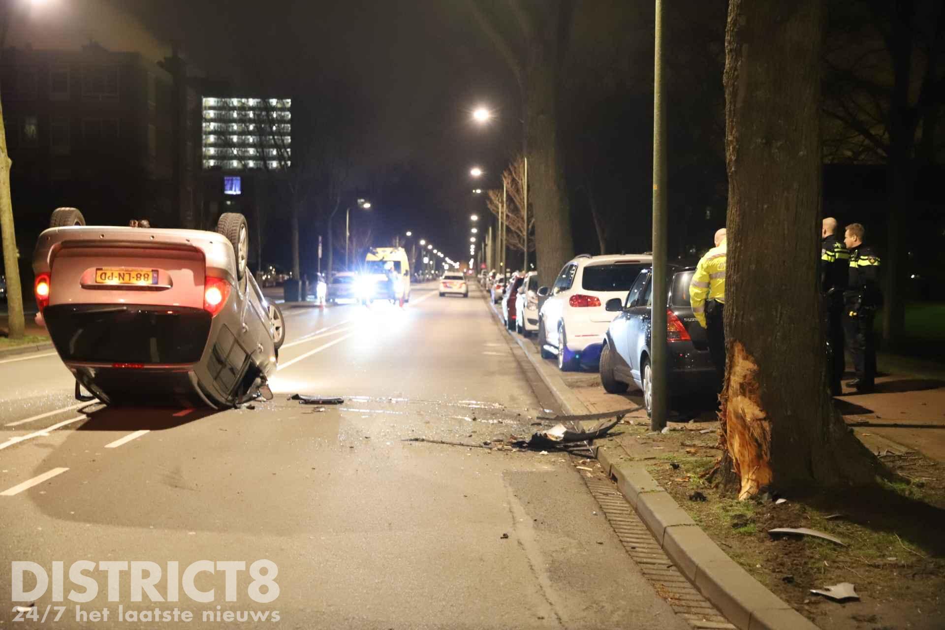 De bestuurder reed op hoge snelheid door de bebouwde kom. Op de Hengelolaan met de Bouwlustlaan in Den Haag ging het mis. De bestuurder raakte de macht over zijn stuur kwijt, knalde tegen een boom en kwam op z’n dak tot stilstand.