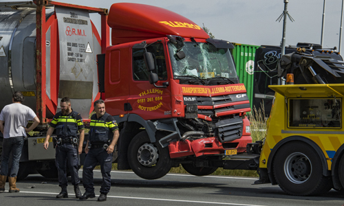 Vlaardingen / Schiedam – De A4 tussen knooppunt Kethelplein en de Beneluxtunnel is donderdagmiddag deels dicht geweest na een ongeval tussen twee vrachtwagens. Door het ongeval werd de afrit Vlaardingen-Oost afgesloten, net als de baan naar de rechter tunnelbuis van de Beneluxtunnel. De chauffeur van de achteropkomende vrachtwagen raakte gewond en is overgebracht naar het ziekenhuis. Een takelwagen heeft de vrachtwagen meegenomen. Na het opruimen van het wegdek konden rijstroken weer worden vrijgegeven.