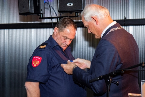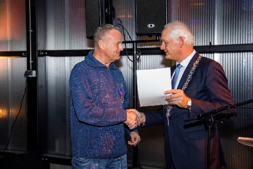 Eén brandweerman kreeg na het opspelden van het lintje voor maar liefst 40 dienstjaren nog een verrassing uit handen van de burgemeester. Vrijwillig brandweerman Rob kreeg een koninklijke onderscheiding en werd benoemd tot Lid in de Orde van Oranje-Nassau. Vanwege zijn jarenlange (vrijwillige) inzet voor de brandweer Schiedam, nog altijd in de actieve uitruk, al enige tijd ook als oefencoördinator van vele en soms ook grote oefeningen en dat alles nog naast zijn gewone baan ontving Rob dit bijzondere lintje.
