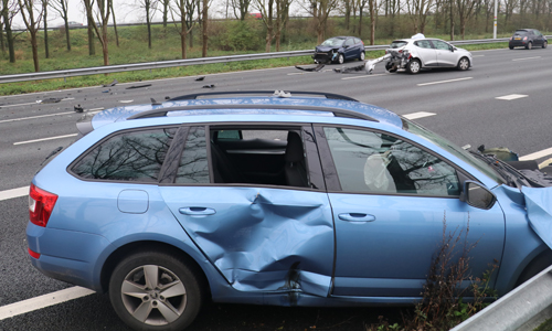 Bodegraven – Rond 5 voor half 12 vanochtend werden diverse hulpdiensten gealarmeerd voor een verkeersongeval op de A12 bij Bodegraven t.h.v. paal 39.4. Ter plaatse bleek er net voor afslag Waarder/Nieuwerbrug een ongeval te zijn gebeurt waarbij 4 personenauto’s betrokken waren met daarin zittend meerdere mensen die moesten worden bevrijd door de brandweer. Waarop naast de politie en meerdere ambulance’s ook de brandweer werd opgeroepen. Zij kwamen snel met spoed aanrijden waarna ze de personen die nog bekneld zaten vrij snel wisten te bevrijden. Deze werden vervolgens overgedragen aan het ambulance-personeel. Waarna ze na een korte behandeling in de ambulance naar het ziekenhuis zijn vervoerd met onbekende verwondingen.Nadat deze klus was geklaard kon de brandweer weer opruimen om vervolgens retour te gaan naar de kazerne. De VOA begon hierop zijn onderzoek welke enige tijd heeft geduurd. Waarna tot slot meerdere bergers de voertuigen hebben geborgen en de weg is schoongemaakt door een gespecialiseerd bedrijf
