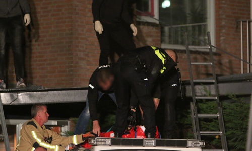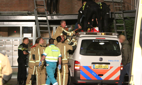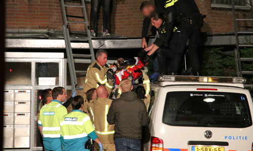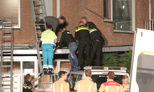 Zoetermeer – De politie werd in de nacht van vrijdag op zaterdag gealarmeerd voor een verwarde man aan de Laveibos in Zoetermeer. Toen de politie arriveerde werd het arrestatieteam ingeschakeld. De man was op het dak van een appartementencomplex terecht gekomen. Toen de politie hem van het dak wilde halen viel de man van het dak. Hij kwam op dak van de entree terecht. Direct werden verschillende hulpdiensten gealarmeerd. Ook het Mobiel Medisch Team uit Rotterdam werd opgeroepen. Doormiddel van een politiebus konden de hulpdiensten bij de man komen. Hier bleek de man niet zwaargewond te zijn en kon het MMT worden afgemeld. De man werd in een vacuümmatras gelegd en daarna naar beneden getild. Hierna werd hij in de ambulance onderzocht. Na korte tijd vertrok de ambulance onder politiebegeleiding met spoed naar het ziekenhuis.