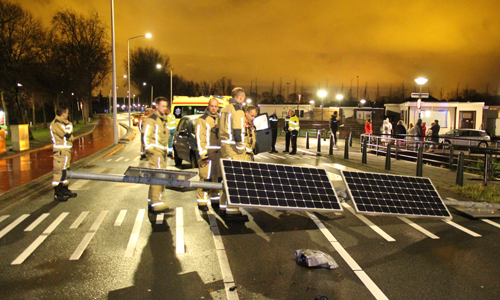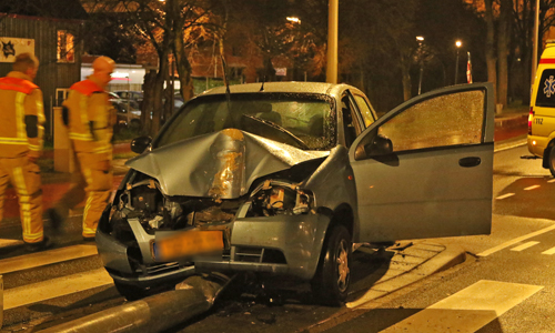 In de vroege ochtend van zaterdag 16 december is een automobilist met flinke vaart op een verkeerszuil en verkeerspaal op de midden vluchtheuvel. Dit gebeurde op de Noordweg in Den Haag.