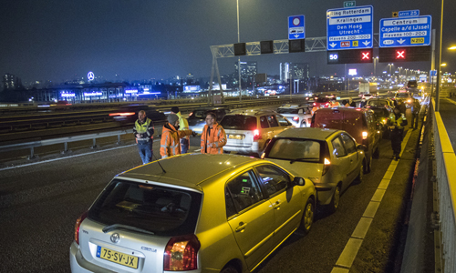 Rotterdam – Een flinke kettingbotsing heeft maandagavond 16 januari voor behoorlijk wat chaos gezorgd op de A16 van Breda naar Rotterdam. Ter hoogte van de afslag Capelle a/d IJssel, net na de van Brienenoordbrug, knalden zo’n 16 auto’s op elkaar. Er werden 2 ambulances opgeroepen om de medische zorg te verlenen aan de automobilisten en de inzittenden. Er is minstens 1 persoon naar het ziekenhuis vervoerd. Vanwege het ongeluk zijn twee rijstroken afgesloten geweest. Diverse bergingsvoertuigen hebben de auto’s van de snelweg gehaald.