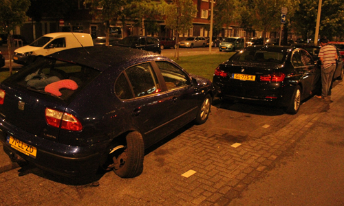 Home Den Haag 16 juli Auto wijkt uit en rijdt tegen een geparkeerde auto aan... Den HaagHaaglanden 16 juli Auto wijkt uit en rijdt tegen een geparkeerde auto aan De La Reyweg Den Haag 16 juli 2017 FacebookTwitterPinterestWhatsApp Den Haag – Zondagmorgen 16 juli heeft een automobilist een uitwijkactie gedaan, waarna hij omstreeks 3:00 uur op De la Reyweg in Den Haag op een geparkeerde auto botste. De automobilist draaide de rotonde af en vond dat hij te ver aan de rechterkant reed en stuurde terug naar links. Doordat hij hierbij remde, blokkeerde zijn remmen en kwam hij in een slip. Hierdoor klapte hij op een geparkeerde auto, die daarbij flink schade opliep en total loss werd verklaard. De auto van de automobilist raakte aan de zijkant beschadigd. Door de klap activeerde alle airbags, waarna de auto is afgesleept door berger Vreugdenhil. Een opgeroepen ambulance keek de bestuurder na, maar die had op een hoofdwond na, geen ernstig letsel opgelopen. Hij hoefde niet vervoerd te worden. De eigenaar van de geparkeerde auto regelt de berging zelf met de verzekering. De la Reyweg was tijdelijk in één richting afgesloten. Foto’s : Mike van Doorn