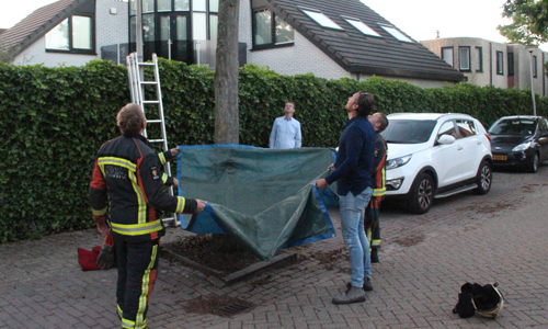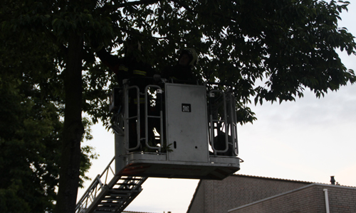 Nieuwerkerk a/d IJssel – De brandweer werd vrijdagavond gealarmeerd voor een dier op hoogte aan de Italiaansezoom in Nieuwerkerk a/d IJssel. Ter plaatse bleek er een kat al enige tijd in een boom te zitten, maar durfde niet meer naar beneden. De brandweer heeft met behulp van de autoladder het beestje kunnen pakken en werd daarna weer herenigd met zijn baasje.