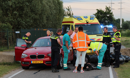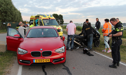 Den Hoorn – Op de Lotsweg in Den Hoorn heeft vrijdagavond een aanrijding plaatsgevonden tussen een motor en een auto. Nadat de motorrijder tegen de auto aan terecht kwam viel hij tegen een betonnen afscheiding aan. De motorrijder werd nagekeken door het ambulancepersoneel en daarna mocht hij zelf lopend de ambulance in. Hierna werd hij zonder spoed vervoerd naar het ziekenhuis. Voor de motor werd een berger besteld.