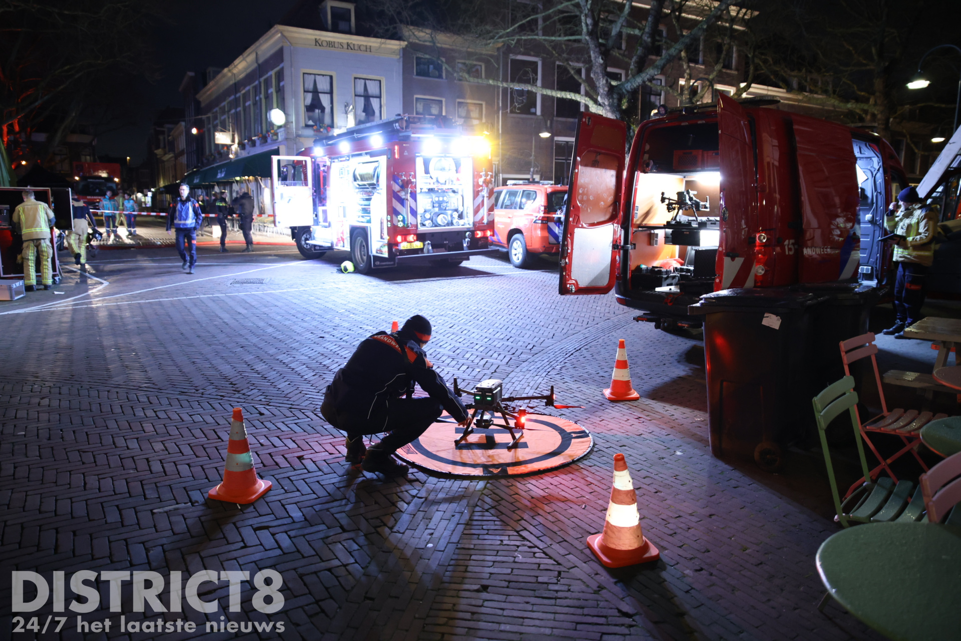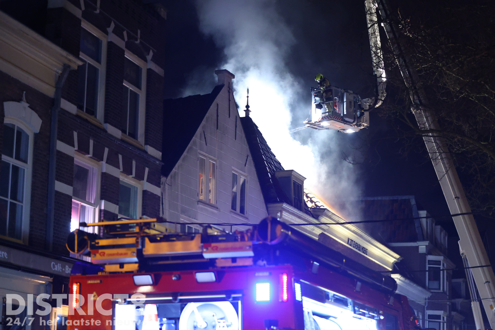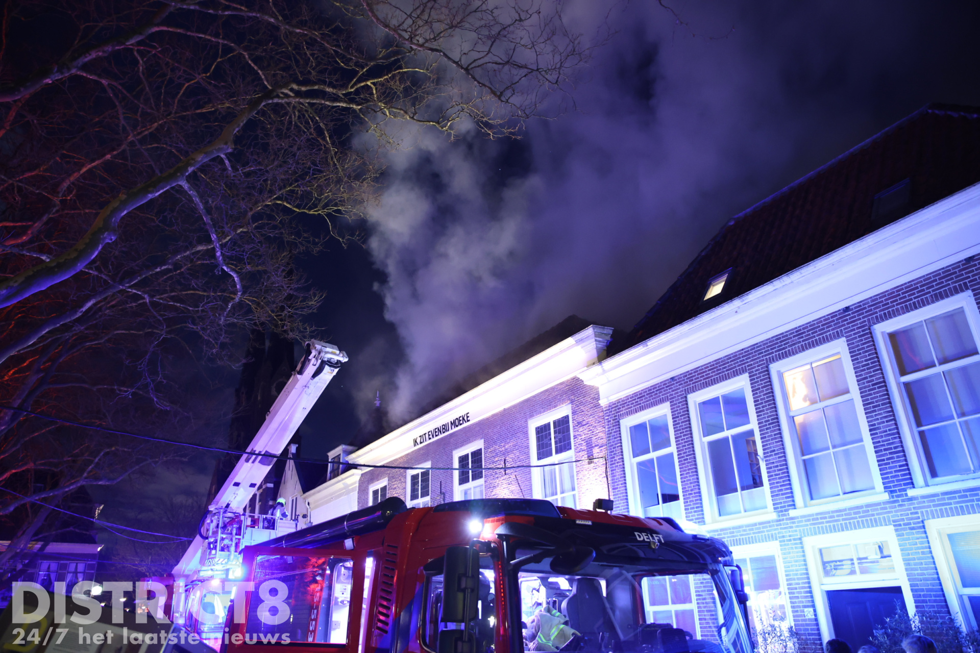 Delft-Beestenmarkt. Rond 01.15 uur is er brand uitgebroken in een woning. Brandweer heeft extra personeel en materieel laten komen omdat de brand in het dak zit en moeilijk te bereiken is. https://t.co/DJkFBcxHUW