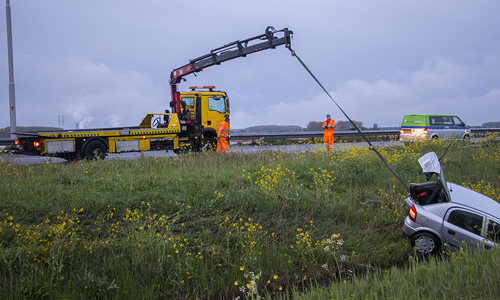 Vlaardingen – Op de A20 ter hoogte van Vlaardingen heeft maandagochtend vroeg een aanrijding plaatsgevonden. De bestuurder van een personenauto botste met hoge snelheid op zijn voorganger. De voorste automobilist raakte daardoor de macht over het stuur kwijt, en belandde in de sloot naast de snelweg. Een ambulance kwam ter plaatse om de inzittenden na te kijken. Niemand hoefde naar het ziekenhuis. De zwaar beschadigde voertuigen zijn door een berger geborgen.