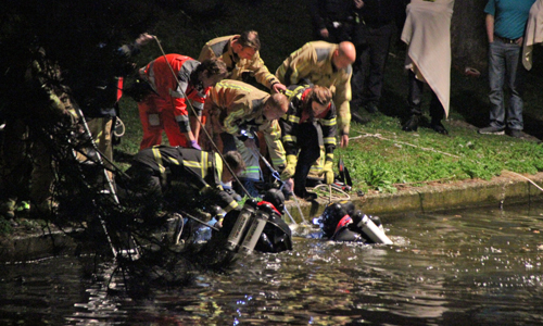 Den Haag – In de nacht van dinsdag op woensdag is er groot alarm geslagen voor een auto te water aan de Soestdijksekade in Den Haag. Volgens getuigen kwam de auto op hoge snelheid door rood gereden op de Troelstrakade en begon te tollen. Door het rond tollen werd een paaltje geraakt waarna de auto 180 meter verder op in het water terecht kwam. Een brandweerman en politieagent bedachten zich geen moment en hebben een eerste reddingspoging gedaan, maar deze mislukte. Hierop zijn de brandweerduikers te water gegaan en hebben één slachtoffer uit het water kunnen halen. De ambulancedienst en heb Mobiel Medisch Team hebben direct hierop behandeling ingezet. De duikers zijn hierna opnieuw het water in gegaan op zoek naar een mogelijk tweede slachtoffer. Nadat er geen tweede slachtoffer werd aangetroffen hebben de duikers het water verlaten.