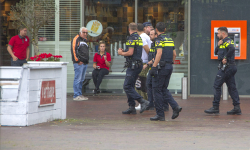 Vlaardingen – Donderdagmiddag is er op de v. Hogendorplaan in Vlaardingen een aanhouding verricht waarbij een agent zijn wapen trok om de man te dwingen zijn handen te laten zien. De man werd gezocht door de politie voor meerdere zaken waarbij het dringend gewenst was hem aan te houden. Nadat de verdachte gespot was bij het winkelcentrum van Hogendorpkwartier gingen diverse eenheden van de politie met spoed ter plaatse. Omdat de man met zijn handen op de rug op de politieagenten afliep trok een van de agenten zijn wapen. Hij riep de man luid toe op zijn knieën te gaan zitten met zijn handen omhoog. De man gaf hieraan gehoor waarna de agenten hem konden boeien en afvoeren. De actie van de politie ging razend snel en duurde nog geen minuut waardoor het winkelend publiek er weinig van mee gekregen heeft.