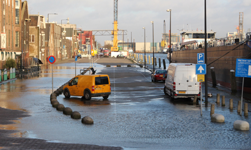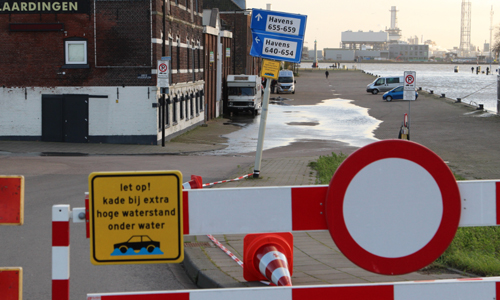 Vlaardingen – De kades rondom de Vlaardingse haven zijn op woensdagmiddag door de hoge waterstanden wederom onder water gelopen. De meeste bedrijven hebben voorzorgsmaatregelen genomen en mensen hebben hun auto?s verplaatst. Enkele personen hebben hun auto wel laten staan. Onder andere de Maasboulevard en Koningin Wilheminahaven liepen onder water. Enkele kades zijn door de gemeente afgesloten. Over schades door het water is niets bekend.