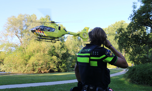 Delft – Zaterdag 17 juni werden aan het begin van de avond meerderen hulpdiensten gealarmeerd voor een medische noodsituatie in een woning aan De Kempenaerstraat in Delft. Naast de politie en twee ambulances werd ook het Mobiel Medisch Team opgeroepen. Zij kwamen ter plaatse met de traumahelikopter. Omdat al snel duidelijk werd dat het slachtoffer op een bovenverdieping lag en niet via de trap naar beneden kon worden gebracht werd ook de brandweer opgeroepen. Doormiddel van de hoogwerker kon het slachtoffer naar beneden worden gebracht. Kort daarna werd het slachtoffer met spoed overgebracht naar het ziekenhuis. De arts van het MMT hoefde niet mee met de ambulance. De Arts en verpleegkundige van het MMT konden daarna terug naar het Wilhelminapark waar de traumahelikopter weer klaar stond voor vertrek.
