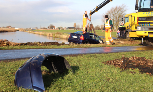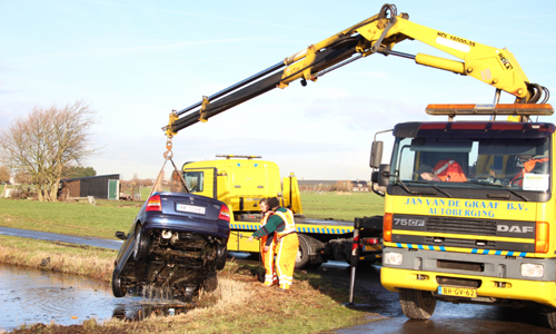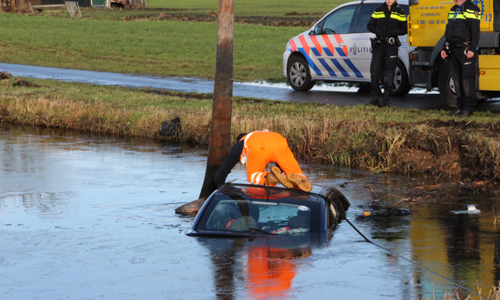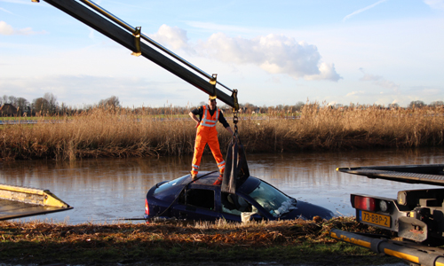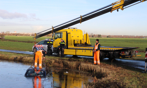 Schiedam – Op het Veenwijdepad in Schiedam (de nieuwe weg tussen Midden-Delfland en de Woudweg) is zaterdagavond een auto vanaf het fietspad het water in gereden. De bestuurder had mogelijk geen rijbewijs. Vanmorgen werd het incident pas bij de politie gemeld. Er waren twee takelwagens nodig om de auto uit het water te krijgen. Er zijn geen aanhoudingen verricht.