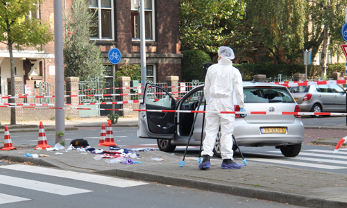 Het slachtoffer is in kritieke toestand naar het ziekenhuis gebracht. Op de locaties van het schietincident en de crash van de motorscooter verrichtte forensische opsporing zorgvuldig onderzoek.