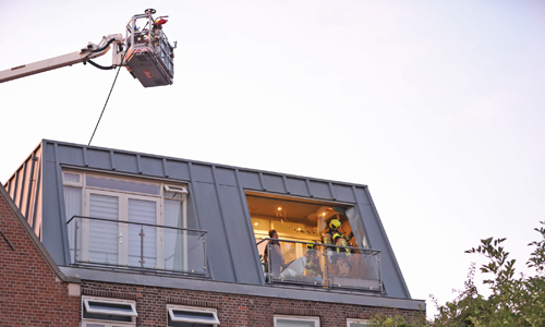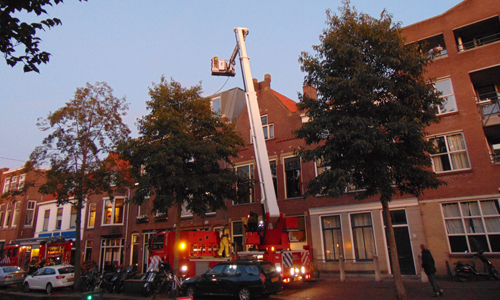 Delft – Maandagavond 17 september is de brandweer groots gealarmeerd voor een brand in den woning aan het Achterom in Delft. Ter plaatse bleek er een brand te woedde in het dak, de brandweer stelde de hoogewerker op om doorslag naar het dak te voorkomen. Brandweermannen hebben op het balkon sloopwerkzaamheden verricht om bij de brandhaard te komen, de schade aan de woning is flink. Zover bekend zijn er geen gewonden gevallen.