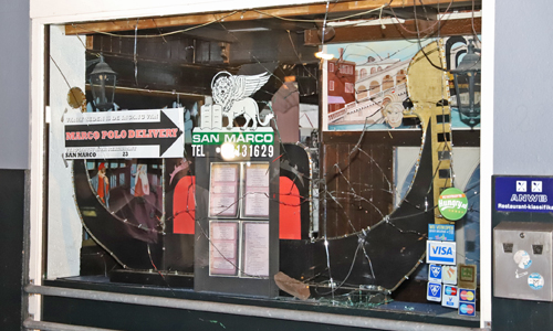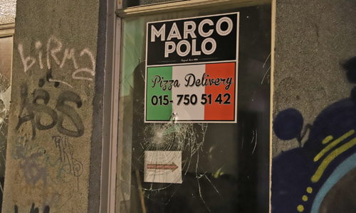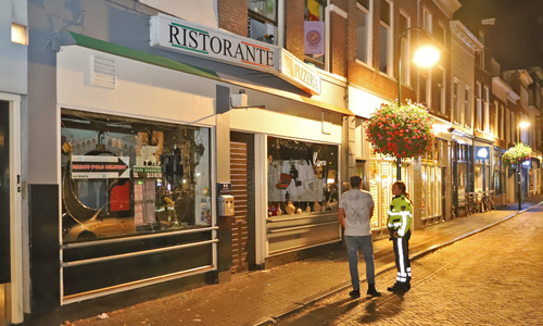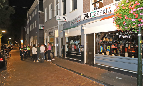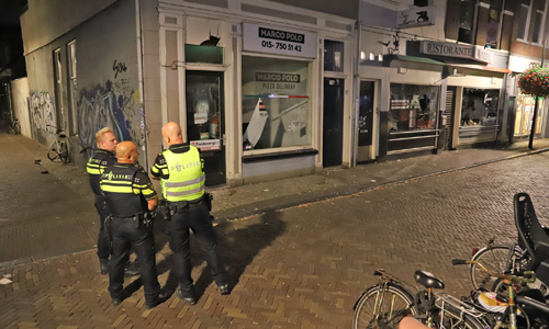 Delft – Maandagnacht kreeg de politie rond 01:00 uur een melding dat er aan de Brabantse Turfmarkt in Delft ramen waren ingegooid door twee personen op een zwarte scooter. De politie nam grote voorzorgsmaatregelen, meerdere politie-eenheden waaronder de hondenbrigade kwamen ter plaatse. Sommige agenten droegen kogelwerende vesten. Ter plaatse bleek dat er tien ramen waren ingegooid bij pizzeria San Marco aan de Brabantse Turfmarkt in Delft. De politie heeft in de omgeving een zoektocht gestart naar de scooter waarop de twee daders zaten. De pizzeria ligt nog geen 300 meter vanaf de Breestraat waar Zondagochtend 16 september is geschoten. Of de incidenten verhouding houden met elkaar is niet bekend.