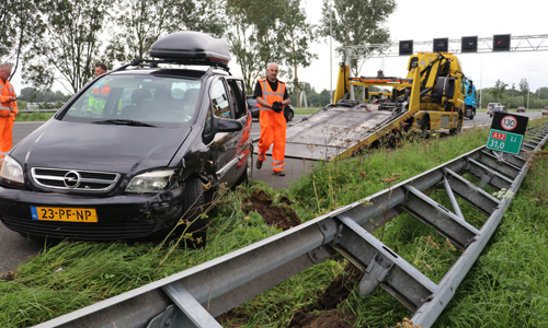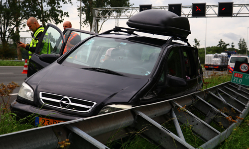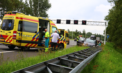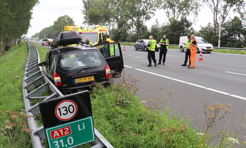 Reeuwijk – Omstreeks 10 uur vanmorgen werden de hulpdiensten gealarmeerd voor een ongeval op de A12 bij Reeuwijk. Ter plaatse was er een personenauto tegen de vangrail aangereden. De brandweer heeft bij aankomst het voertuig nagekeken op lekkende vloeistoffen e.d. Het ambulancepersoneel heeft de inzittenden gecontroleerd op eventueel letsel, uiteindelijk hoefde er niemand naar het ziekenhuis. Een bergingsbedrijf is er plaatse gekomen en heeft het voertuig geborgen. Ten tijden van het incident waren er twee rijbanen afgesloten.