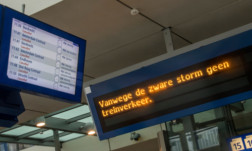 Rotterdam – De NS heeft aan het einde van de ochtend het gehele treinverkeer volledig stil te leggen in het hele land vanwege de zware westerstorm. Vele reizigers moesten gebruik maken van het streekvervoer om op hun plaats van bestemming te komen. Halverwege de middag was het treinverkeer nog altijd niet opgestart.