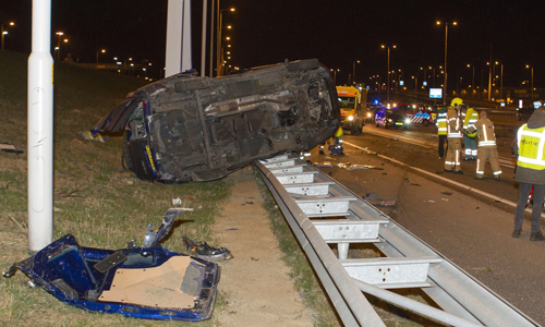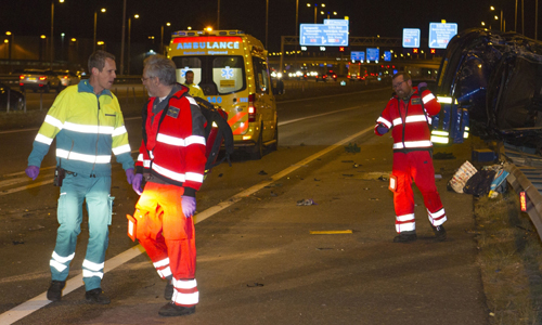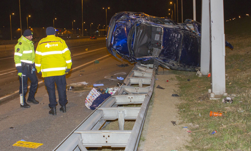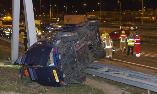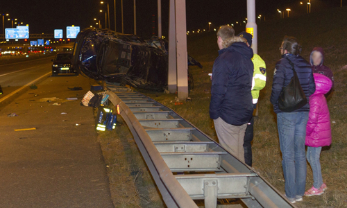 Rotterdam – Op de A15 in Rotterdam (parallelbaan Ridderkerk richting Hoogvliet) heeft zondagavond een ernstig ongeval plaatsgevonden. Een bestelbusje kwam vanaf de hoofdrijbaan en botste op een personenauto die op de parallelrijbaan reed. Het busje kwam vervolgens gekanteld bovenop de vangrail tot stilstand. Politie, brandweer, drie ambulances en het Mobiel Medisch Team (MMT) kwamen met spoed ter plaatse. Ten minste 1 persoon raakte gewond en is met spoed naar het ziekenhuis gebracht. De parallelrijbaan was tijdens de hulpverlening volledig afgesloten.