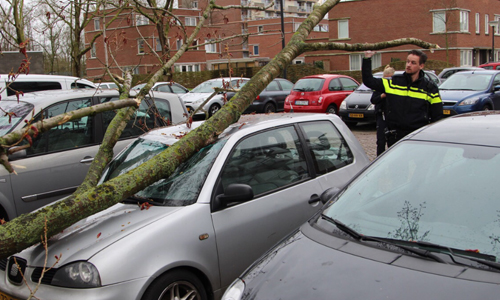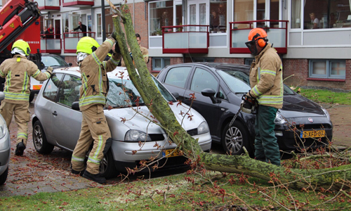 Vlaardingen – Afgelopen nacht is in de Van Viandenstraat in Vlaardingen een boom op een auto gevallen. Door de harde wind waaide de boom om. De auto raakte zwaar beschadigd. In de ochtend probeerde men de boom van de auto te halen, maar dat lukte niet. De brandweer kwam ter plaatse om te assisteren. Zij hebben de boom uiteindelijk in stukken gezaagd en aan de kant gelegd.