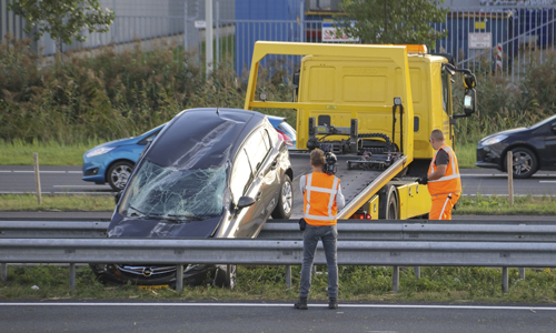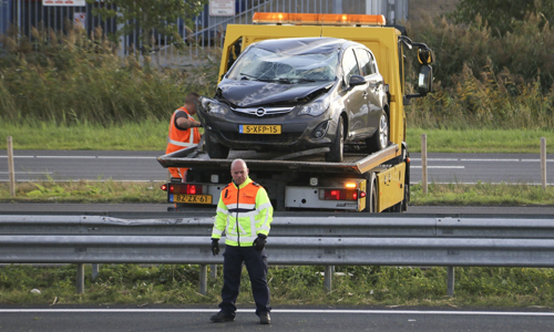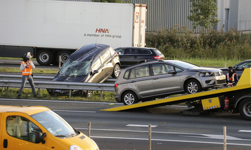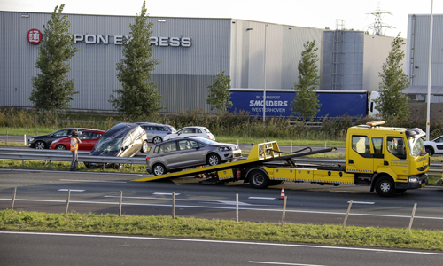Pernis – donderdagmiddag heeft er op de A15 een ongeval plaats gevonden waarbij een van de voertuigen over de kop sloeg en achterste voren op de vangrial tot stilstand kwam. Bij het ongeval waren vier voertuigen betrokken. De brandweer en traumahelikopter rukten uit voor een mogelijke beknelling maar de bestuurder kon het voertuig zelf verlaten. Een ambulance kwam ter plaatse om hem te behandelen. Het letsel viel erg mee en ook de andere bestuurders liepen geen verwondingen op. Drie voertuigen konden niet zelfstandig meer hun weg vervolgen en werden afgevoerd door een bergingsbedrijf. Om de auto van de vangrail te krijgen moest de hoofdrijbaan van de A15 tijdelijk afgesloten worden. Een bestuurder van een taxi busje met passagiers aan boord reed bijna een agent omver omdat hij bezig was het ongeval te film/ fotograferen en werd direct stil gezet voor een bekeuring.