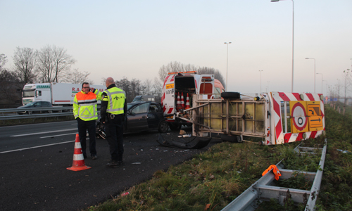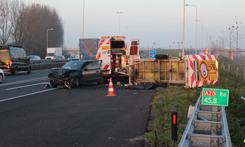 Moordrecht – Maandagmiddag heeft er een ongeval plaatsgevonden op de A20 bij Moordrecht net voor de afrit. Ter plaatse bleek er een personenauto tegen een pijlwagen te zijn gereden, de pijlwagen stond op de vluchtstrook vanwege de werkzaamheden aldaar. De ambulancedienst heeft twee personen gecontroleerd op eventueel letsel, uiteindelijk zijn beide personen vervoerd naar het ziekenhuis. De verkeers ongevallen analyse van de politie heet ter plaatse onderzoek gedaan naar de exacte oorzaak van het ongeval. Ten tijden van dit incident was er één rijstrook afgesloten.