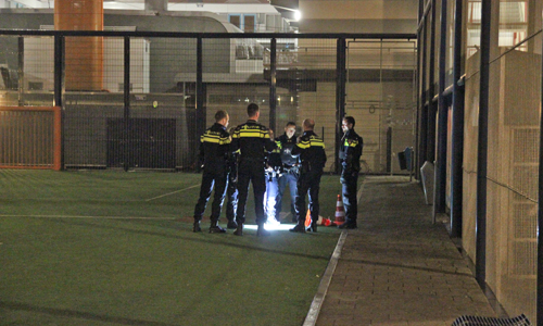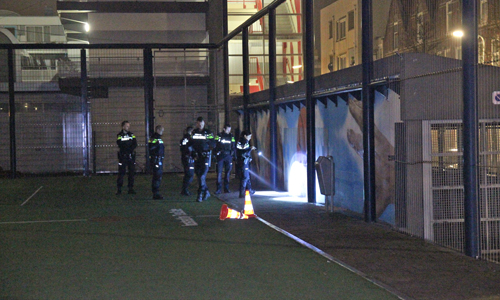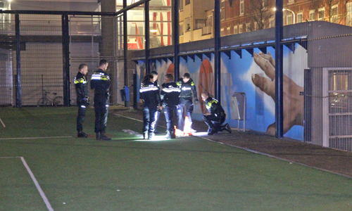 Den Haag – De politie kreeg in de nacht van maandag op dinsdag kort voor twaalf uur een melding van harde knallen bij een Cruyff court aan de Teniersstraat in de Haagse Schilderswijk. Omdat er een mogelijkheid was dat er was geschoten met een vuurwapen gingen agenten met kogelwerende vesten naar het incident. De politie zocht het volledig veld af en trof hierbij een voorwerp aan dat leek op een huls. Volgens een bewoner werd er op het veld geschoten. De politie nam het voorwerp mee voor onderzoek.