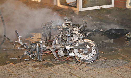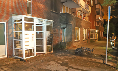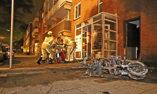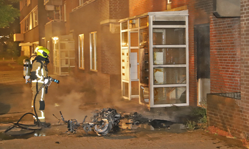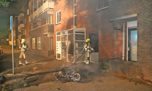 Den Haag – Een bewoner van een portiekflat aan de Schenkweg in Den Haag heeft vannacht ergens voorkomen. De bewoner ontdekte een scooterbrand bij de voordeur van het portiek. Het vuur verspreidde zich aan de voorzijde en de vrijgekomen rook trok het portiek in. De bewoner alarmeerde de brandweer, welke de brand snel onder controle kreeg. De brandweer heeft verschillende ruiten van het portiek moeten slopen om de rook uit het pand te krijgen. Er raakte wonderbaarlijk niemand gewond. De oorzaak van de brand is niet bekend. Brandstichting wordt niet uitgesloten.