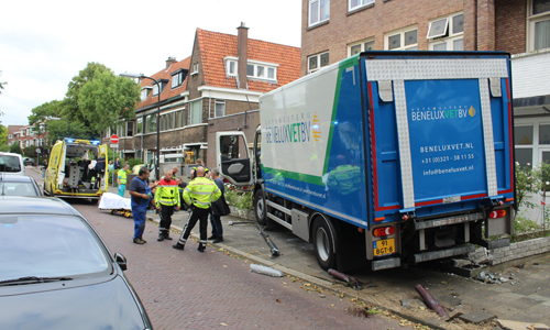 Den Haag – Een vrachtwagenchauffeur heeft dinsdagmiddag extreme schade aangericht op de Broekslootkade in Den Haag. De vrachtwagen reed vanaf de Rijswijkseweg over een fietspad richting de Broekslootkade. Daar reed hij paaltjes, fietsen en een betaalautomaat omver. Hierna kwam hij in een tuin tot stilstand. De politie heeft de bestuurder uit de auto gehaald en ligt op hem. De man is niet aanspreekbaar. De ambulancedienst kijkt het slachtoffer na, deze is niet veel later met spoed vervoerd. Er zijn wonder boven wonder geen omstanders slachtoffer geworden. De Broekslootkade is afgesloten. De politie doet onderzoek.