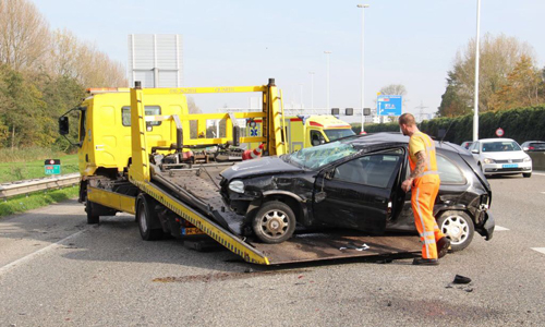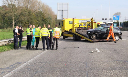 Schiedam – Donderdagmiddag zijn de hulpdiensten waaronder de brandweer en traumahelikopter gealarmeerd voor een aanrijding op de A20 richting Hoek van Holland. Ter plaatse bleek na een aanrijding tussen een auto en een vrachtwagen de auto op zijn kop terecht te zijn gekomen. De bestuurder kon zelfstandig het voertuig verlaten. 3 van de 4 rijstroken waren door het ongeval afgesloten, met als gevolg ruim drie kwartier vertraging. De inzet van de brandweer en traumahelikopter bleek uiteindelijk niet nodig te zijn. Voor zover bekend is de bestuurder ter controle meegenomen naar het ziekenhuis.