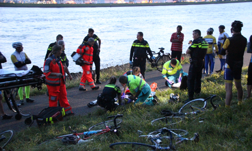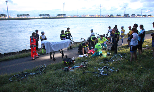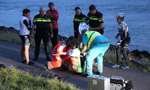 Maassluis – Dinsdagavond 19 september werden de hulpdiensten waaronder de traumahelikopter uit Rotterdam gealarmeerd voor een ongeval aan de Schenkeldijk in Maassluis. Er werden ook twee ambulance’s gealarmeerd. Ter plaatse bleek er een ongeval te hebben plaatsgevonden tussen twee wielrenners. Het personeel van de traumahelikopter heeft samen met het aanwezige politiepersoneel eerste hulp verleend. Het personeel van het MMT heeft bij 1 van de slachtoffers een infuus aangelegd. Beide ambulance’s hebben zich later bijgevoegd aan de hulpverlening. Een van de slachtoffers is met ondersteuning lopend de ambulance in gegaan. Het andere slachtoffer heeft een beenspalk omgekregen en is via de brandcard de ambulance in gegaan.