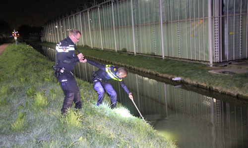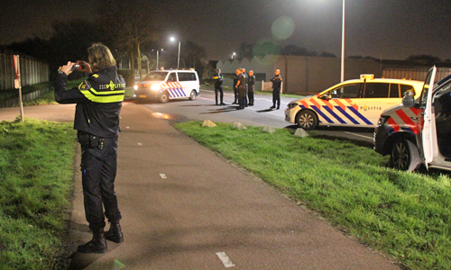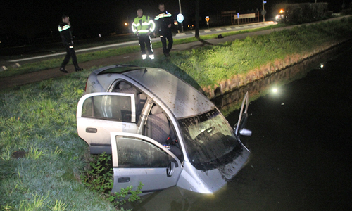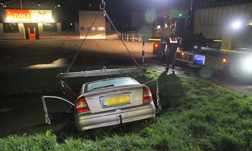 ‘s-Gravenzande – Zondagochtend iets na een uur is er op de Nieuwelaan in ‘s-Gravenzande een te water geraakte auto aangetroffen. Van de inzittende(n) was echter niets meer te bekennen. Agenten van de politiebureau’s Hoek van Holland (eenheid Rotterdam) en Naaldwijk (eenheid Den Haag) kwamen ter plaatse, net als enkele eenheden van de Koninklijke Marechausee. Via het kenteken is de bestuurder achterhaalt waarna deze thuis is aangehouden. Onderzoek zal uitwijzen waarom de man plaats ongeval heeft verlaten. Berger Vreugdenhil heeft de auto uit het water gehaald en meegenomen.