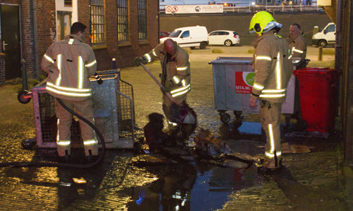 Vlaardingen – Aan de Doggerstraat in Vlaardingen stond zondagavond een van de restaurant containers in de brand. De eigenaar van het wok restaurant probeerde nog de container te blussen met emmertjes water maar dat wilde niet erg lukken. De brandweer kwam ter plaatse en trok de container bij de andere afvalcontainers weg. Na de eerste blussing werd de container omver gegooid zodat het afval er uitgehaald kon worden om verder afgeblust te worden.