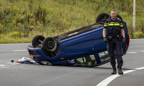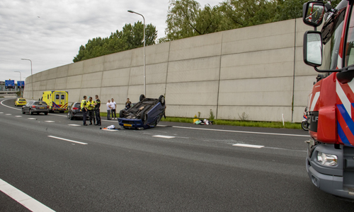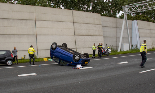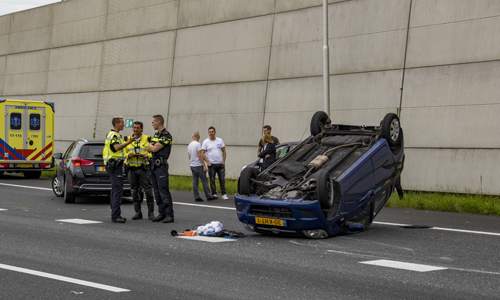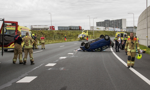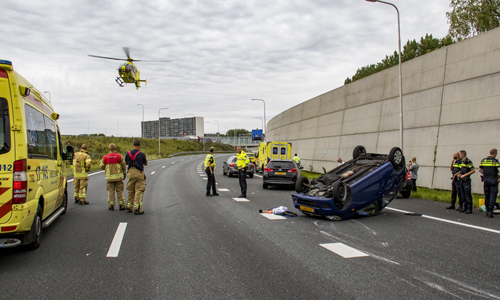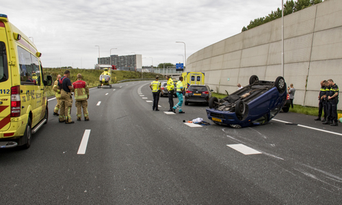 Schiedam – Woensdagmiddag is een vrouw gewond geraakt toen zij met haar auto over de kop sloeg op de A20 in Schiedam. Politie, brandweer, ambulances en de traumahelikopter kwamen met spoed ter plaatse. Het ongeval gebeurde in de bocht van de A20 vanuit Schiedam richting de A4. De gehele rijbaan werd afgesloten. De traumahelikopter landde midden op de snelweg.