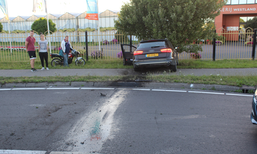 Honselersdijk – Zondagavond 2 juli iets voor negen uur werden de hulpdiensten gealarmeerd voor een eenzijdig ongeluk op de rotonde van de Veilingroute met de Zwethlaan in Honselersdijk. Ter plaatse bleek een Audi-bestuurder rechtdoor over de rotonde te zijn gereden en tegen een boom te zijn gecrasht. De bestuurder raakte gewond en is zonder spoed naar het ziekenhuis vervoerd. De Verkeerspolitie heeft ter plaatse onderzoek gedaan naar het ongeluk. Mogelijk heeft de bestuurder van de auto te veel gedronken. Berger Vreugdenhil heeft de zwaarbeschadigde auto meegenomen. De Provincie zal de gehavende rotonde herstellen.