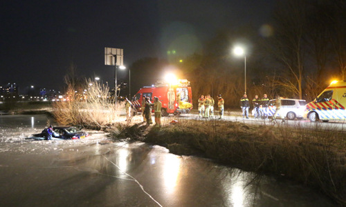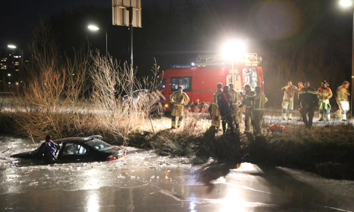 Rijswijk – Donderdag op Vrijdagnacht werden de hulpdiensten groots gealarmeerd voor een voertuig te water op het Hazepad in Rijswijk. Meerdere ambulance’s, brandweer-eenheden en politie-eenheden kwamen ter plaatse. Ter plaatse bleek er een auto in het ijskoude water geraakt te zijn, de inzittende van het voertuig waren al zelfstandig uit de auto gekomen, zij zijn direct opgevangen in een warme ambulance.