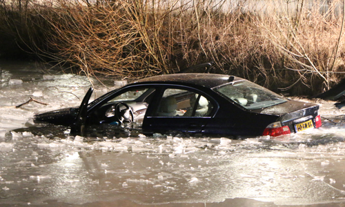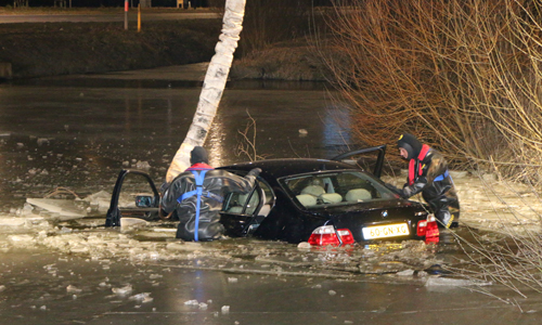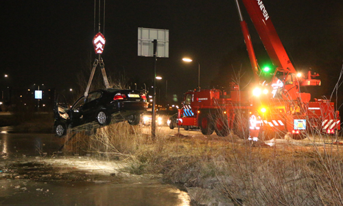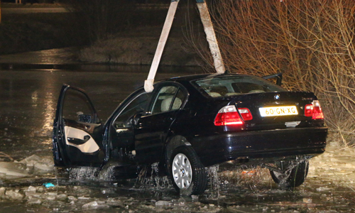 2 maart Auto belandt in het ijskoude water Hazepad Rijswijk [VIDEO]