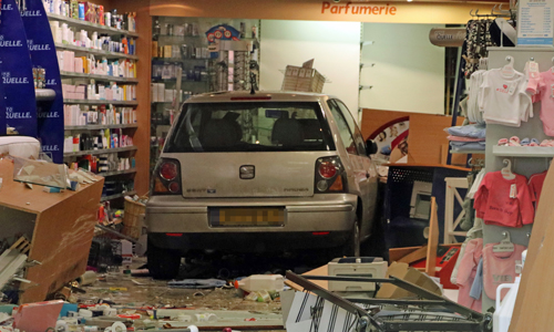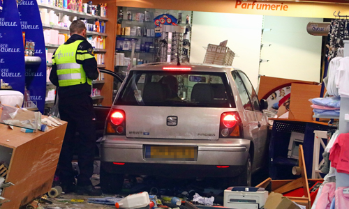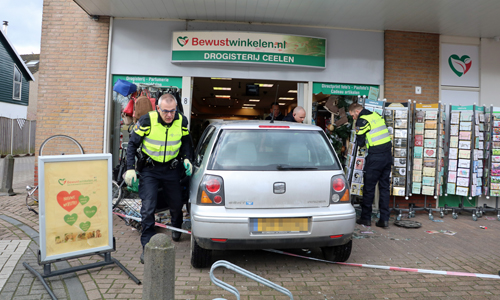 Hier zou door een nog onbekende reden een vrouw met haar personenauto in een winkel (drogisterij) gereden zijn. Waarbij er veel schade ontstond. Al snel kon echter de traumahelikopter afgemeld worden want de vrouw en anderen die zich in de winkel bevonden bleken wonder boven wonder niet gewond te zijn geraakt. De vrouw kon dan ook zelf de auto verlaten waarna ze wel even kort door een ambulance nagekeken werd. Echter hoefde ze niet mee.