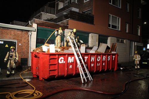 Den Haag – Dinsdagochtend om 03:30 is de brandweer opgeroepen voor een brand in de Datheenstraat in Den Haag. Bij aankomst bleek een grote container met hout in de brand te zijn gestoken. De vlammen kwamen tot meters hoog. Meteen is de brandweer van Scheveningen begonnen met blussen. Dit heeft ruim een half uur in beslag genomen, gezien het feit dat de container vol lag met planken, en de brandweer er zeker van wou zijn dat de brand ook daadwerkelijk uit was. Een garagedeur, waarvoor de container geplaatst was, is door de brand beschadigd geraakt. Verder bleef de gevel naast de container gespaard.